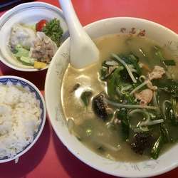 厨房男性2ホール女性1切り盛り。入って右手にカウンター。右手前と左奥にテーブル。豆腐ソバとあるので麻婆麺とは違うのかなと思ったが、配膳されたのはやはり麻婆麺だった。