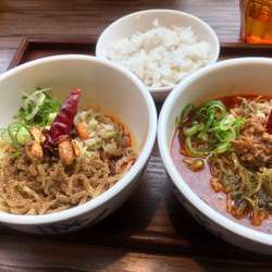 | 備考 | 汁あり、汁なし四種類の担々麺950-970円 ハーフ&ハーフというその内から二種類の麺類を小ドンブリで提供するサービスもあり。 夏期は冷やしもある |