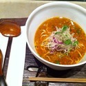 | 備考 | 「Thai style noodles cuisine」を標榜する隠れ家的なお店。 大きな庭園のある町屋を利用した店内はムーディでラーメン屋・居酒屋などでカテゴライズできない空間を備えている。 ・初訪問の時は「濁」と「澄」の2種のメニューから選択。メンバーズカード(キリフダ)を渡される。 ・キリフダ所有者はメンバーズメニュー(4種のヌードルメニュー等が追加される)からオーダーできるようになり、訪問時にキリフダに焼印を押してもらえる。 ・キリフダに焼印が4つ揃うと焼印完成。2階の8人テーブルで季節限定メニューが楽しめる。また同時に1日限定1台のみ駐車場を用意してもらえる。(2日前まで要予約) 初訪問時のメニュー 濁(だく) 1000円…米麺 澄(すみ) 1000円…小麦麺 |