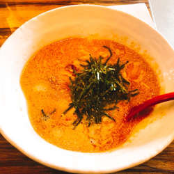 サラッとライトな豚骨に黒胡麻を合わせたスープは、香ばしくてラー油がアクセントになってます。