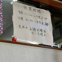 | 営業時間 | 11:00~13:40(オーダーストップ)/16:00~18:30 公式(2021/3/27現在)には上記の営業時間だが20分位前に暖簾は仕舞われます |