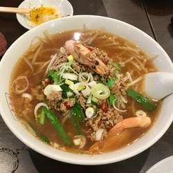 サンマー麺(825円)を。スープは、醤油が牽引するバランスだが、やや甘さを感じさせる味わい。トロミがしっかりと効き、ニンニクのアクセントも感じます。麺は、シャキッとした中細ストレート。具は、もやし・玉ねぎ・にんじん・にら・キクラゲ・豚肉。前回訪問時、好印象だったので、同じ商品をリピートしたが、前回に軍配。こちらは2回目。翠葉は翠葉 宮元町店以来の訪問でした。