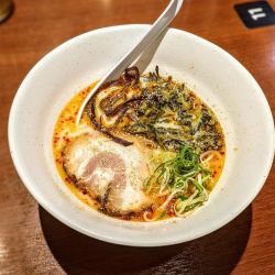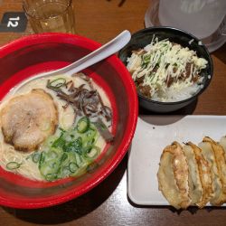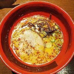 整理券とって、食券を購入。しばらく待って案内を受けた。とんこつラーメンがメインのお店。100円高いとんこつ醤油ラーメンをいただく。少し顔は小さい