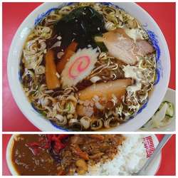 「支那そば、半カレーセット(1150円)」@支那そばの店 見晴亭 宮側店の写真平日の昼、秩父駅。