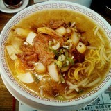 麺は中太の縮れです。加水率は中~高くらいです。余談ながら出前を頼むと、ほぼ生茹で状態の麺で粉っぽさを感じます。出前は麵が伸びやすいからしょうがないと思いますが・・・・・・・・・・・・・・・キャベツ、モヤシ、豚肉、紫タマネギを、焼き肉のタレの様なモノで炒めた... 続きを見る