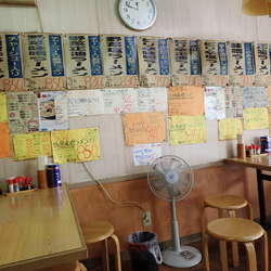 店主さん一人での営業のためか、店内は雑然としていてメニューも薄汚れており、手が回っていない様子だ。