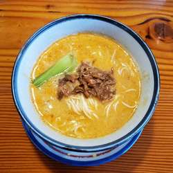 スープ表層はネットりした胡麻。蘊蓄には煎り皮付き白胡麻をペーストした表記。消化にも効率との事。スープを掬うと澄んだ醤油ベースに胡麻のコクが重なる。あっさりしたスープ... 続きを見る