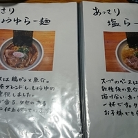 この日は相方と滋賀方面へと出向ぎ、近辺で旨そうなお店をと昼飯にコチラへ伺うことにしました。ちょうど昼時12:00を廻ったあたりでお店に到着、店内は結構席数が多そうでしたがそれでもほぼ満席状態で来客も途切れることなく、はやっている様子です。限定のカツオが売り切れとの事でした。メニューはかなり豊富でしたが、先頭にあった表記を太麺で頂くことに。空腹なので焼き飯セットにてお願... 続きを見る