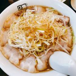 10年以上前に他の店で食べた以来。チャーシューが美味しかった印象で、味変も兼ねてねぎ焼豚で。飲みやすいさっぱりしたスープ、チャーシューは思ったよりは歯応えある感じ。麺は細麺に変えなかったので平打ち縮れな感じ。無難な美味しさ。もっと焼豚トロトロだとよかった