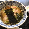 【注文】トンカツラーメン(750円)。元々はサンマーメンを食べようと思って訪問したが、店頭に「トンカツラーメン」の貼り紙があったので、予定を変更してトンカツラーメンを注文することにする。