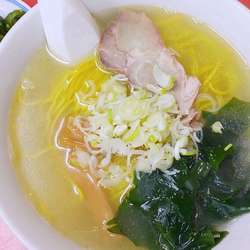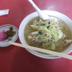 摺り硝子の引戸を開けると、丁度ピークアウトしたか、先客全員食事中。やったばい、お望み通りに塩ラーメン。配膳は超早い、過去イチの早さだった。