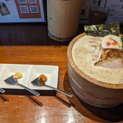 | 備考 | 炭火で焼いた鯵を寸胴にそのまま他の出汁と混ぜて漉すスープ |