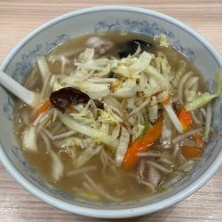 タンメンは野菜たっぷりで食べ応えあり。優しいスープも良い感じ。麺は細めでややウェーブ。するすると入っていきます。