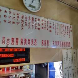 | 備考 | しょうゆラーメン 500 みそラーメン 550 しおラーメン 500 チャーシューメン 700 サンマーメン 650、ほか チャーハン 550 肉チャーハン 650、ほか ギョーザ 450 |