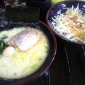 店はカウンターとテーブル席で22人まで入れる。調理場の中にいる男性1人と接客配膳の男性1人の計2名で切盛りしていた。入口入って左手にある券売機で標記の食券を購入。空いていたカウンター席に着き食券を渡す際に麺硬め・油少なめで注文。水はセルフサービスと... 続きを見る