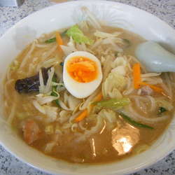 年配男性と若い男性の2名態勢。さらりとしたスープは、味噌風味は濃すぎず、弱すぎず、微かにピリ辛さもあって、丁度良い。それなりに厚みもあってなかなかおいしい。店のHPによると鶏ガラベースとのこと。塩分濃度は適度。油脂感は低い。