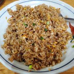 量が多い。ランチセットのライスは頼まなければ出てこない。紙エプロン無。