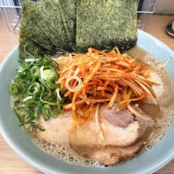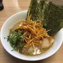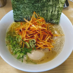 男女で切り盛り。入って右手に券売機。メニュー豊富(尾道ラーメンまであった)で一瞬迷ったが、デフォらしき標記をセレクト。券売機のところには、豚骨スープと書いてあったが、配膳されたのは豚骨醤油でほぼ家系のルックスのもの。