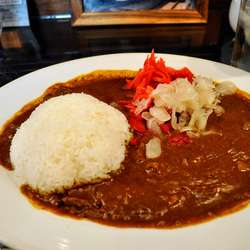 初訪。踏切音が鳴り続ける入口、店内は所狭しと並べられた列車関連グッズが。BGMの代わりに新幹線開通関連のテレビ放送。提供時に発する汽笛音のせいでテレビ音声がほとんど聞こえず。
