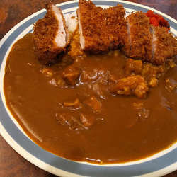 カツの断面が見えなければほぼほぼ保護色のようなカレーとカツ。