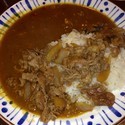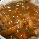 基本のカレーに牛丼の具がのってます。っていうか、カレーに牛丼の具がのってますね。
