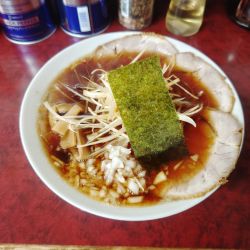 17:15入店すると先客3人、後客3人。ここではセットメニューを食べることが多いが今日は「ネギチャーシューメン:1,000円」と「餃子:480円」を単品で注文。