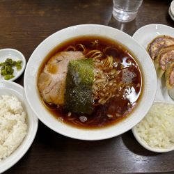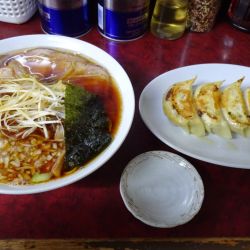 しばらくして出来上がった。ラーメンと餃子のタイムラグを少しでも無くそうとしているのが素晴らしい。