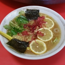 営業されているのか不安でしたが、「ラーメン・ギョウザ」の年代物の電飾スタンドと、暗がりにぼうーっと浮かぶようにして灯りの点る赤いテントを発見。レジェンド店にふさわしい、味わい深い佇まいです。
