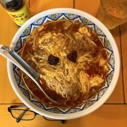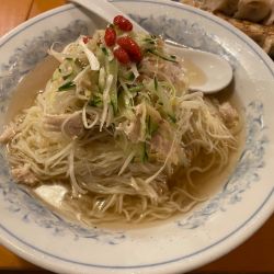 麺が4種類から選べますが自分は中太が好きなので至極の揚州麺でオーダー。自慢のスーラーを汁なしでオーダー。よくかき混ぜ一口。もっちり中太に絡む酸味と辛味、強めなペッパーもいいですねぇ。それよりも揚州は餃子が美味い。ラーメンじゃないけど。。