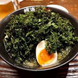 スープは、オイリーでまろやかな口当たり。カエシは強めに効いていて、味濃いめのチューニング。