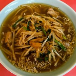 麺は細めストレート.コツンとした食感で噛むと小麦感良いやつ.汁を吸って馴染みも良い.これ好き.体感150g.スープは軽い出汁感に醤油が強め.具材の... 続きを見る