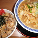 連れは「富士麺+餃子セット」と「とんこつラーメン」