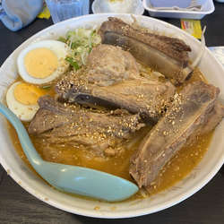 地元では結構有名らしい店舗。金曜18:00で待ちなし空席ありだがすぐ満席。車で来たら順番来たら車に呼びに来てくれる模様。タッチパネルだか旧札のみ対応。タイミング悪いのかラーメン出るまで25分程度。厨房には洗い担当も含めて4人もいるが時間が昭和で止まってるかのようなスローな動き。これもまた良い味なのかも。肝心なラーメンはシャバ系味噌感薄めなタイプ。現代の鍋で豪快に仕上げる濃厚タイ... 続きを見る