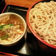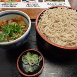 鶏肉ときのこの出汁が効いた濃いめなつけ汁で食べる本格蕎麦は間違いない美味しさ