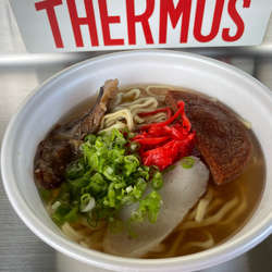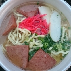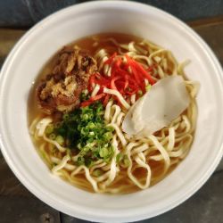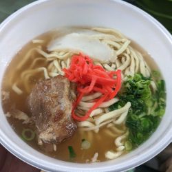 さっぱりとした鰹だしにバランスのよい味付けのスープはいくらでも飲めそうな味わいです。麺は沖縄そばらしい太麺で歯ごたえがあり、食べごたえがあります。具材のポークはこちらもさっぱりしていながら味付けがちょうどよく、おいしく食べられました。