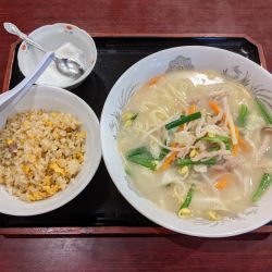 具は刻みチャーシュー、玉子、長ネギで構成。