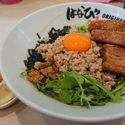 言わずと知れた行列のできる人気店麺屋はなび弥富店へ。昼どきはさすがにカウンター席座るまでが遠い道のりでした。待ちに待ってお目当ての決め打ちで台湾まぜそばDX!全部のせ♪