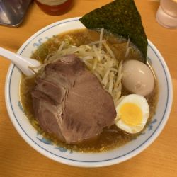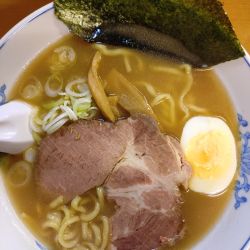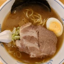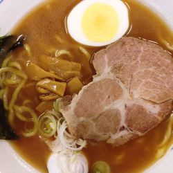 前回の塩は好みではなかったので、もう一度醤油で。 豚骨と濃厚なラードは、醤油の方がよく合っていると思います。 麺は太麺、細麺を選べますが、このスープなら、太麺でしょう。寒い日に食べたくなる、アツアツの一杯です。