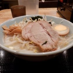 卓上アイテムはラーメンコショー、七味、お酢など