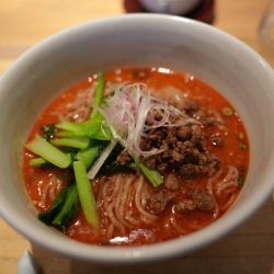 食べたのは、粗挽き肉味噌の担々麺 大盛 山椒麺 1600円+北京ダック 400円=2000円。