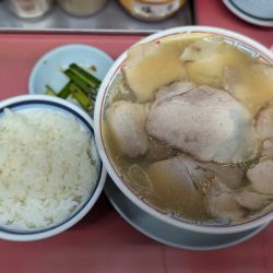 今日は課題のチャーシューめんにニラ小皿(100円)付