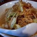 「スープは塩味はあるが旨味が少ない」、麺は「太麺硬め」悪くはないと思うが、私の好みではないです。野菜炒めは美味しかったです。野菜炒めがスープに入って美味しいスープになるのかな?