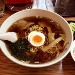 プリプリの縮れ麺としっかり醤油が効いたスープ。鳥ベースに少し和っぽい雰囲気も感じる。