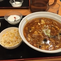 ランチは麺類とのセットのみ。マーボー麺は通常?ラーメンの上にマーボが載っている、との狙い通りの一品
