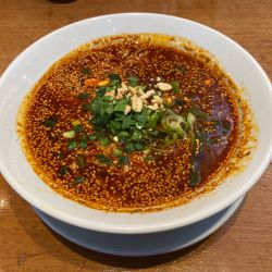 あっさり激辛スープ、辛さだけではなく甘味旨味も感じる、素晴らしいコクです。痺れもあって汗だく。中細平ストレート多加水麺、弾力あって旨いですね。具材はゴマ、少挽肉、小ネギ、刻み青唐辛子。中々美味しかったです。
