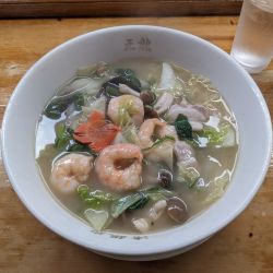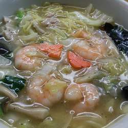 プリプリの海老がたくさんのっていて、トロみのある塩スープも絶品!!