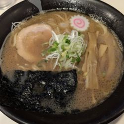 日曜日なのでマイルド系豚骨魚介スープで旨かの~😍