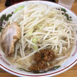 二郎系のワシワシ麺に肉厚チャーシュー、もやしをもりもり食べて完食です😧