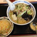 テーブル席に座り、野菜たっぷり湯麺・小チャーハンセット700を注文。