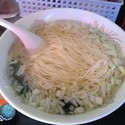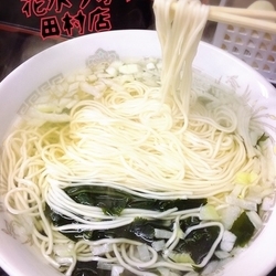 煮麺の様な真っ白たおやか麺、トゥルん♪っと歯応えなく啜れます。